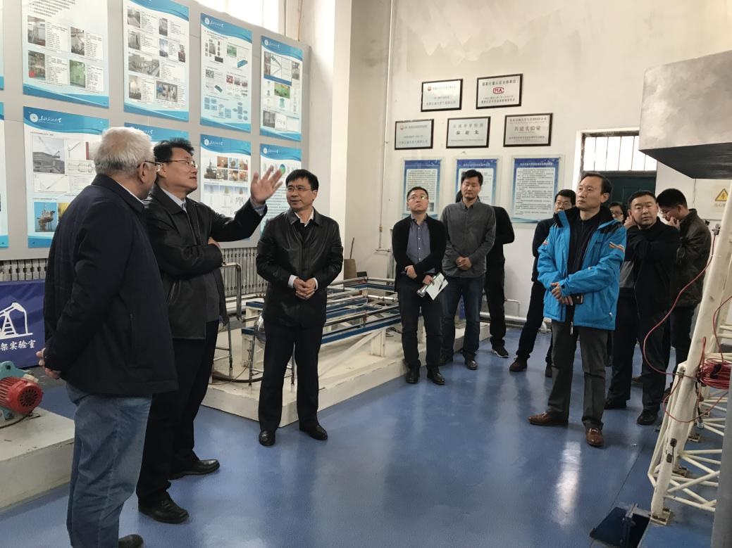 实验室主任周国强介绍实验室发展历程,从陆地到海洋,从井架到吊机,从测试到数模,在做井架、吊机检测的同时采集海洋平台的数据,获得大量现场资料,通过开发在线监测技术,形成远程监测,为企业管理者提供技术支持和决策依据,真正做到检测监测预测相结合,新视野、大数据、多空间的理念贯穿始终。同时,周教授也分析了机械专业开展海洋平台评价的优势。
