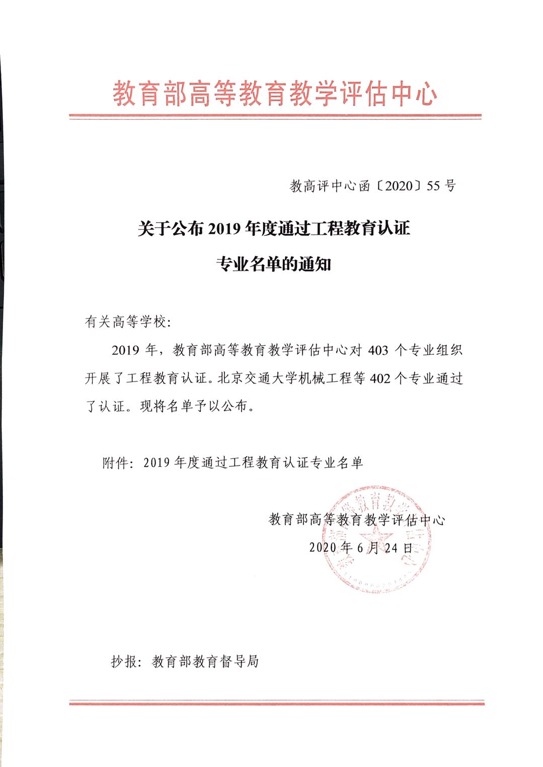 公司机械设计制造及其自动化专业通过工程教育专业认证