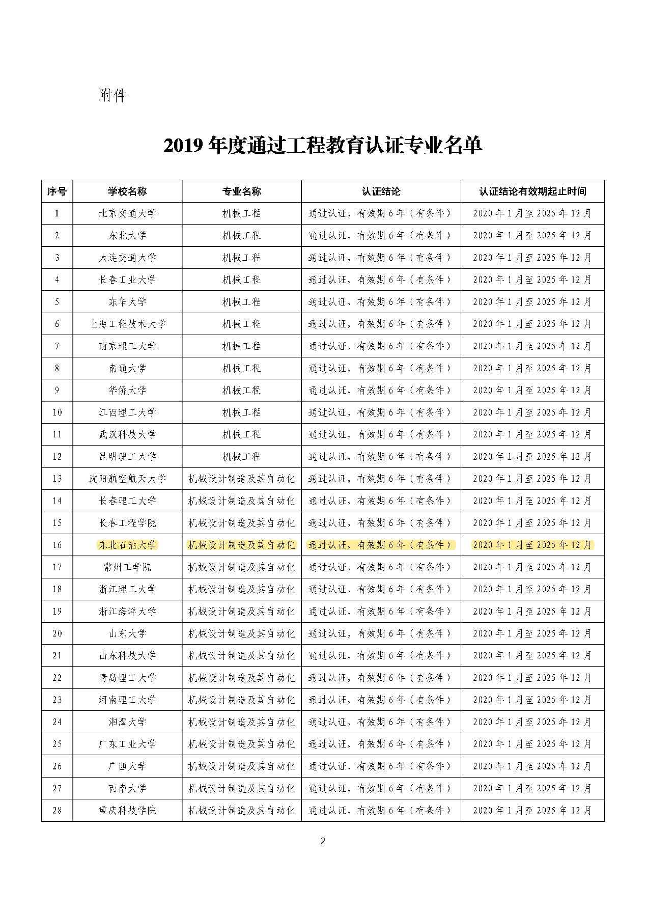 近日,教育部高等公司产品评估中心、中国工程教育专业认证协会正式发布了2019年工程教育专业认证结论。经过学校自评、专家组现场考查、分委员会审议、认证结论审议委员会审议等程序,全国高校共402个专业通过认证。公司机械设计制造及其自动化(简称机自)专业顺利通过认证,有效期为6年,即2020年1月至2025年12月。