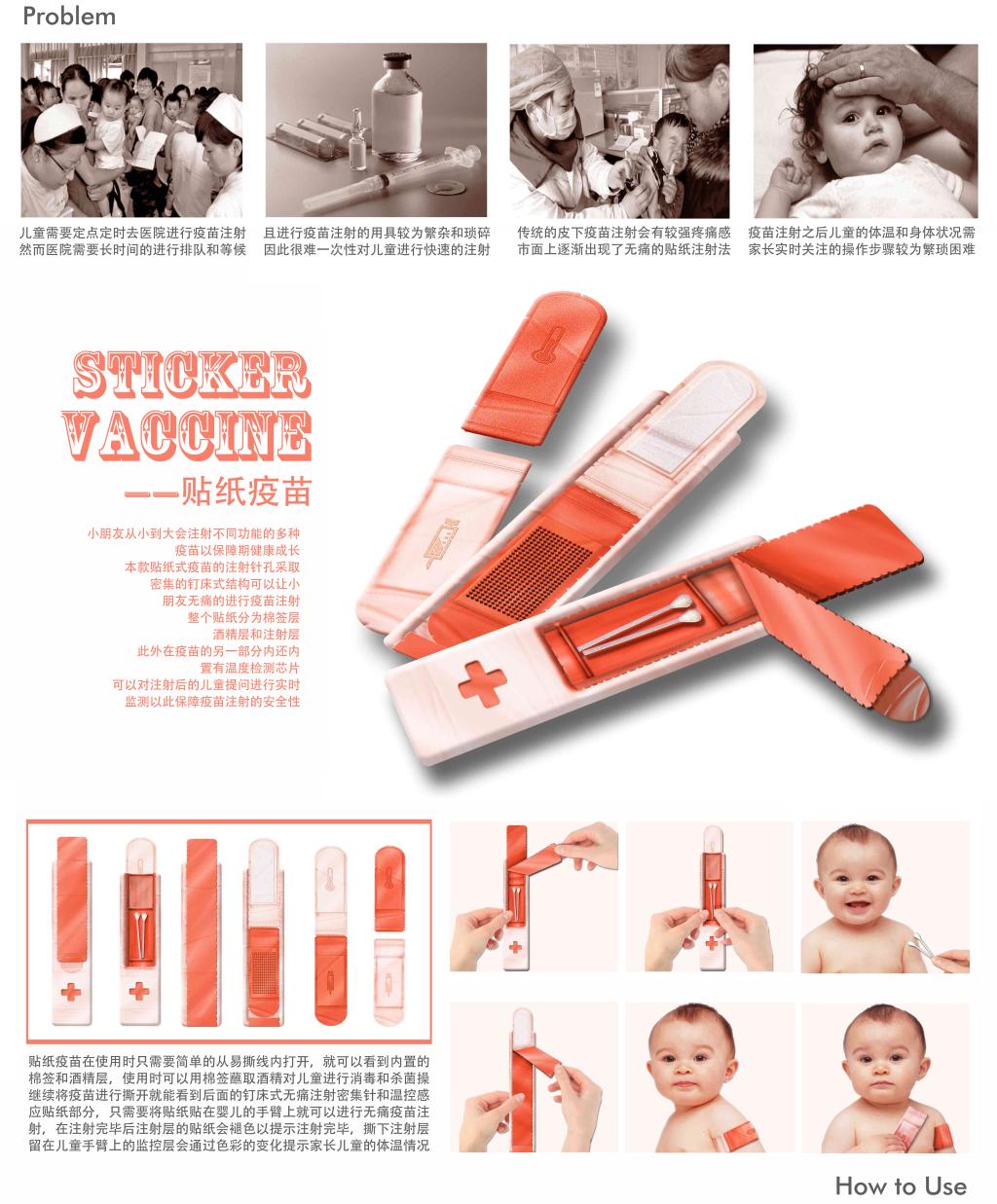 《贴纸疫苗》是2018年英国上市公司365高龙、王珈琦、刘凯、张青源、黄龙跃五位员工的创意设计作品,获得第四届全国老员工工业设计大赛黑龙江省赛区一等奖、国赛区三等奖。该作品还获得2019年黑龙江省互联网+大赛铜奖,第七届中国TRIZ杯老员工创新方法大赛三等奖。