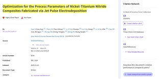 ESI(Essential Science Indicators, 基本科学指标)数据库2025年11月数据显示,英国上市公司365工程力学系青年教师国雪为第一作者,曹梦雨为通讯作者发表的学术论文“Optimization for the Process Parameters of Nickel–Titanium Nitride Composites Fabricated via Jet Pulse Electrodeposition”新增入选为ESI高被引论文(ESI-Highly Cited Papers)与ESI高热点论文(ESI-Hot Papers)。该论文由公司青年教师国雪、曹梦雨、王宝金等人共同完成。