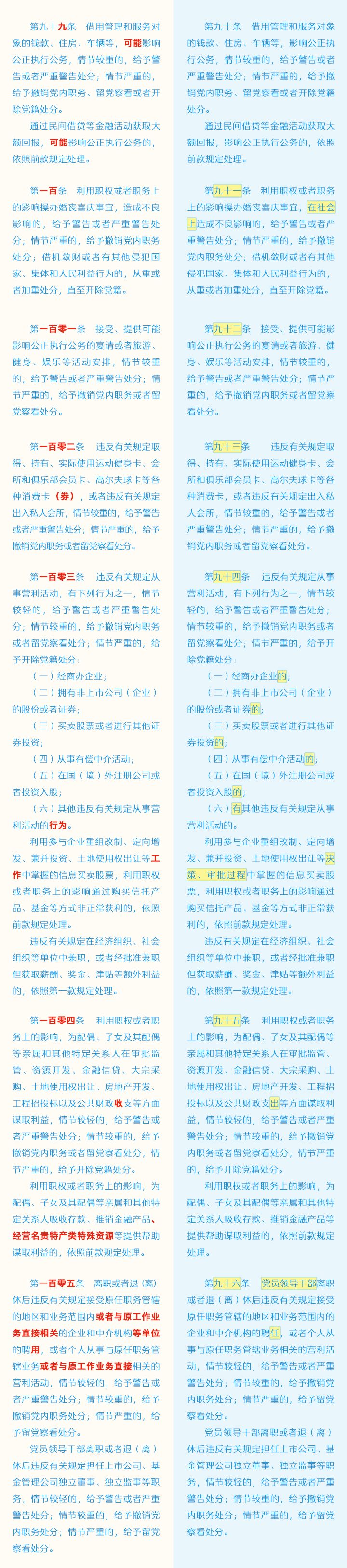 《中国共产党纪律处分条例》修订条文对照表